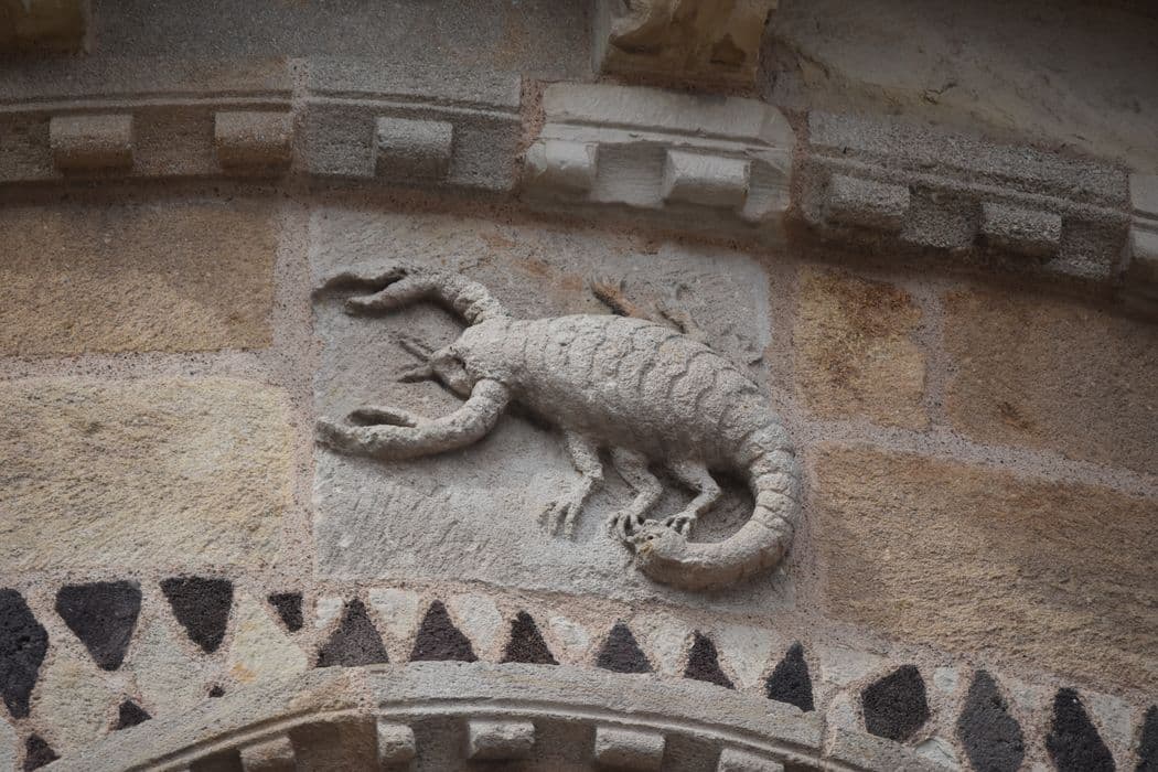 chevet, détail du bas-relief du scorpion