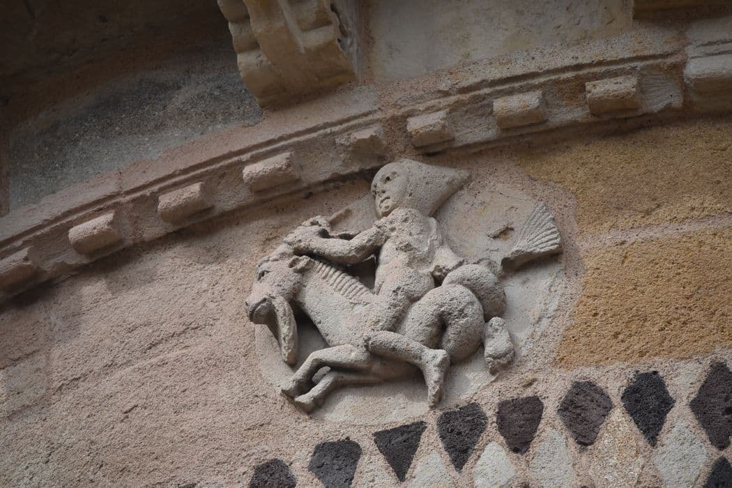 chevet, détail du bas-relief du capricorne