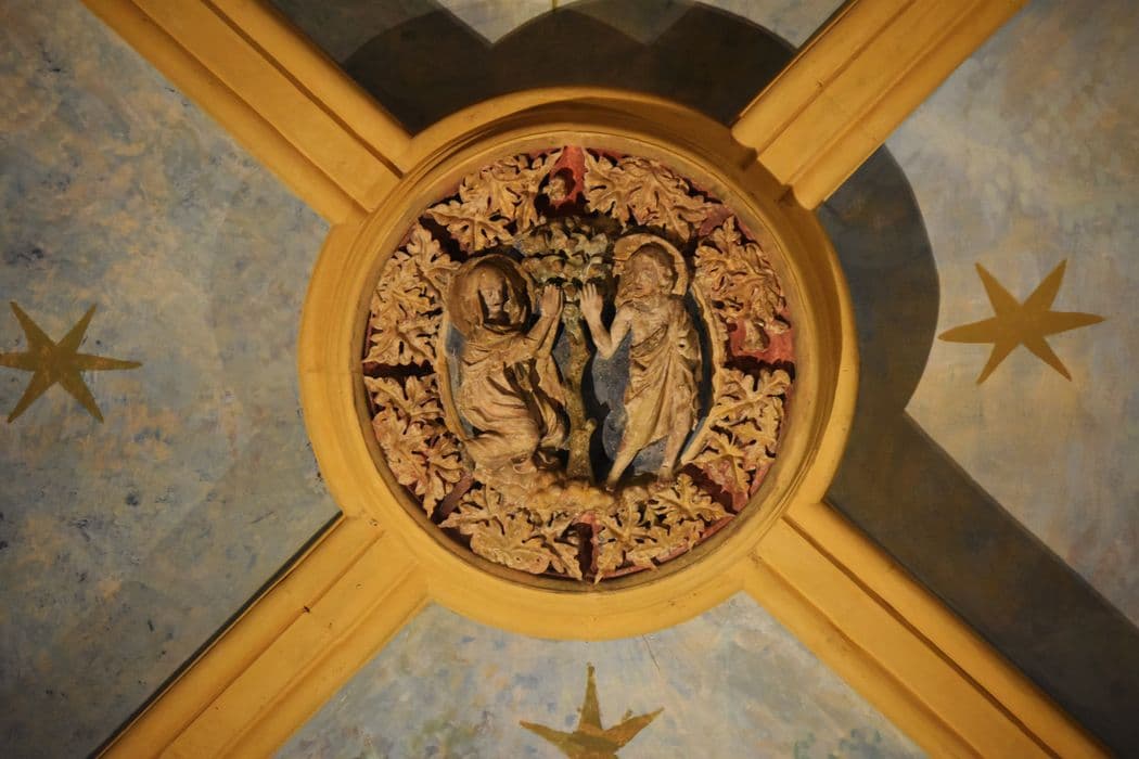 chapelle haute (chapelle Sainte-Croix), détail d’une clef du voûte du choeur