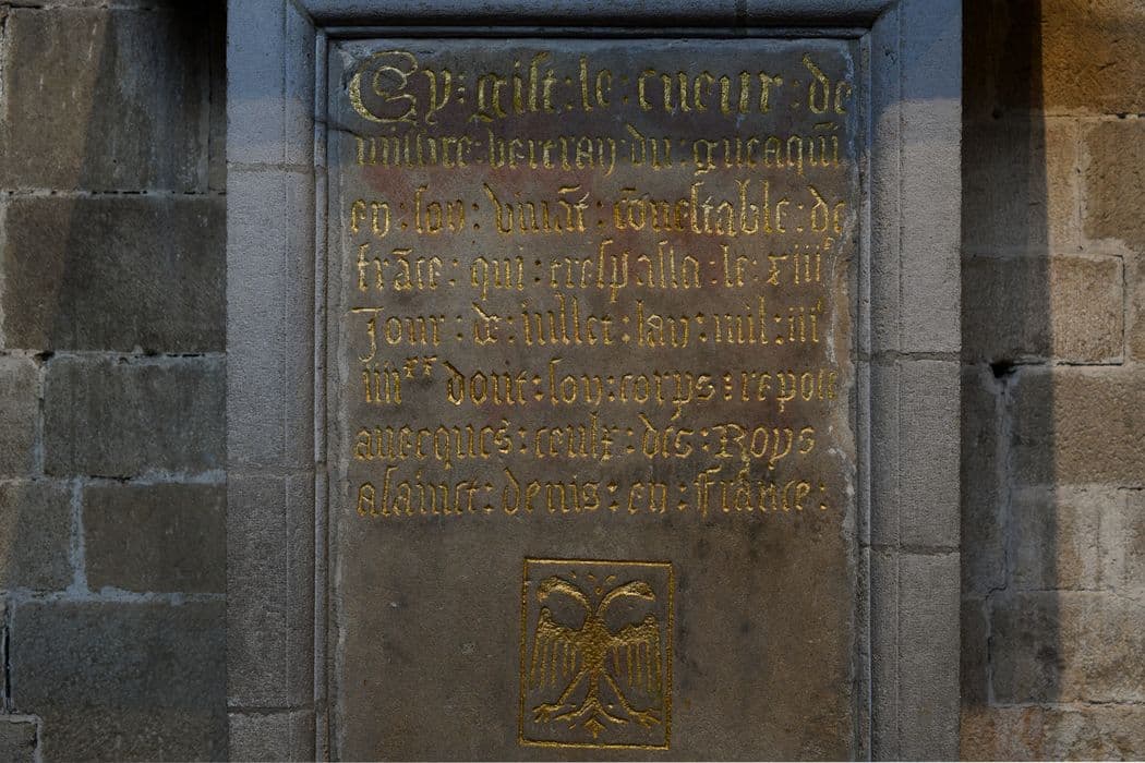sarcophage, tombeau du coeur de du Guesclin, détail de l’inscription