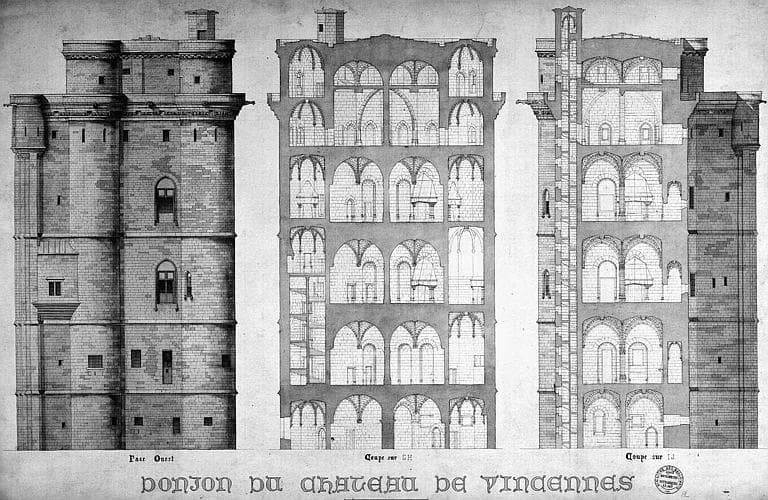 POP | Plateforme ouverte du patrimoineFace ouest du donjon : Elévation et coupes