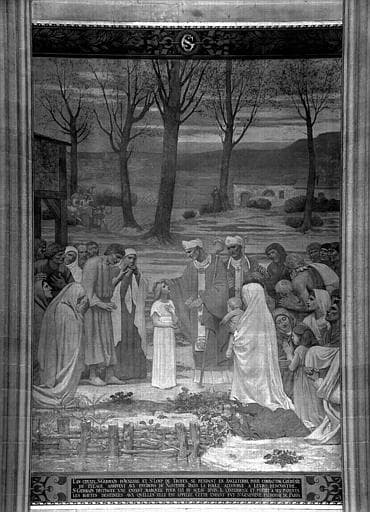 Peinture murale : Rencontre de sainte Genevièvre et saint Germain d'Auxerre (partie centrale)