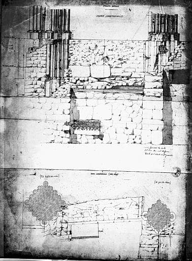 POP | Plateforme ouverte du patrimoineSituation des piliers après les fouilles exécutées en 1859 pour la construction du tombeau de la dynastie impériale : Coupe et plan