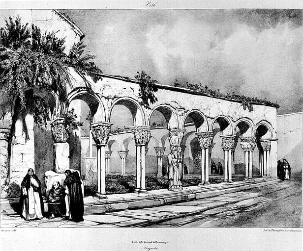 Lithographie : Vue intérieure du cloître