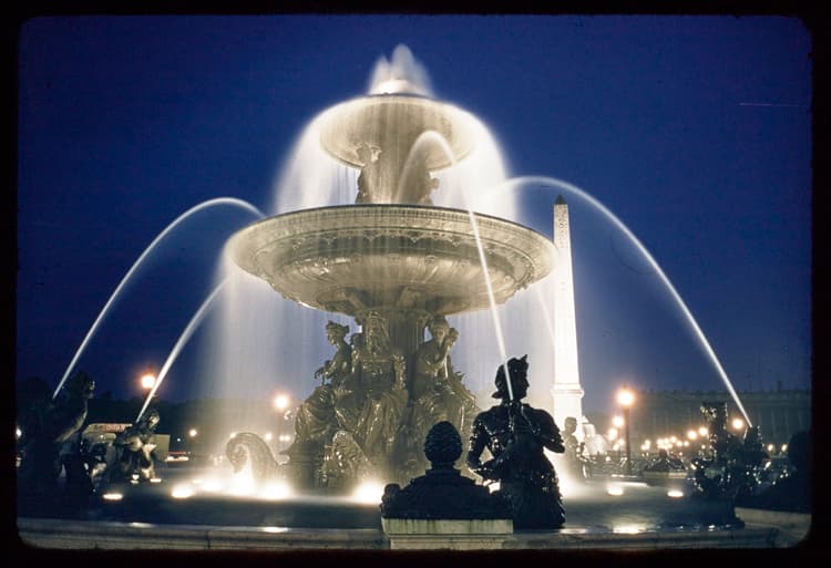 Place de la Concorde de nuit, Paris, 1955 ; [Fontaine des Mers]