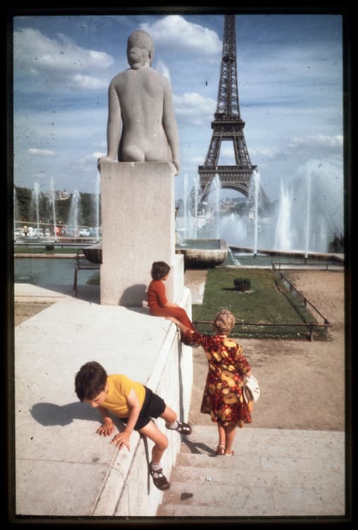 Jardins du Trocadéro, Paris, 1970 ; [Enfants ; Statue : La Femme de Daniel Bacqué]