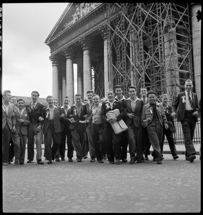 Conscrits d'Arcueil, Paris, 1945 ; [Groupe portant la cocarde]