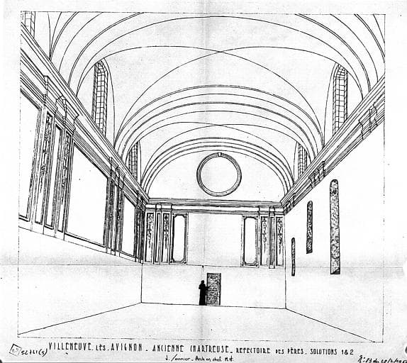 POP | Plateforme ouverte du patrimoineDessin : Vue intérieure du réfectoire (solution 1 et 2)