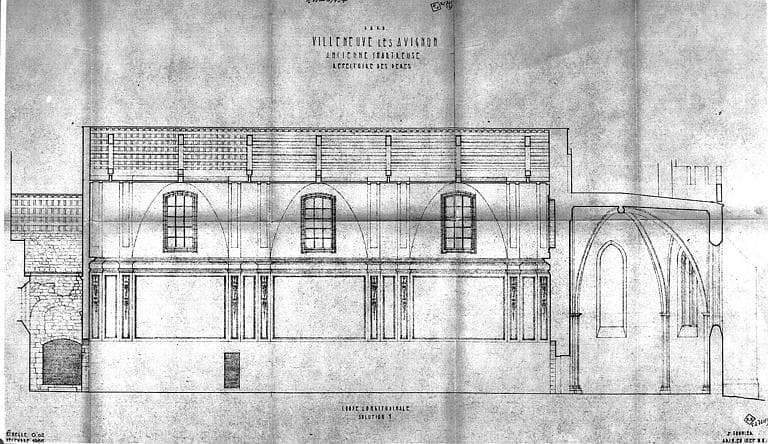 POP | Plateforme ouverte du patrimoineCoupe longitudianle du réfectoire (solution 1)