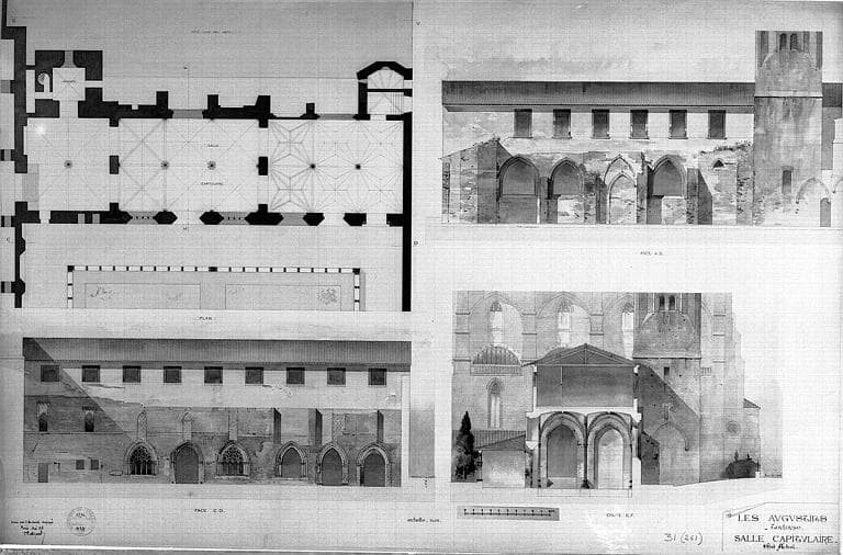 Plans, coupes et élévations de la salle capitulaire (état actuel)