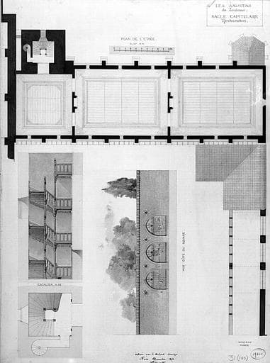 Plans, coupes et élévations de la salle capitulaire (état restauré)