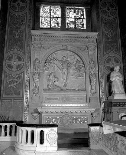 POP | Plateforme ouverte du patrimoineRelief derrière un autel : Apparition du Christ à ?, anges portant les instruments de la Passion