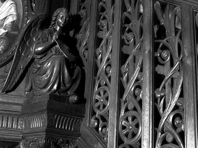 Détail de la chaire : Ange en ronde-bosse