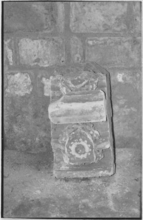 Numérisation à partir du tirage joint à l’inventaire des dépôts lapidaires réalisés dans les années 70. Fiches cartonnées blanches au format paysage avec vignette photographique collée.