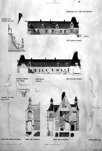 POP | Plateforme ouverte du patrimoineElévations, coupes et détails (Dessin à la plume et aquarelle)