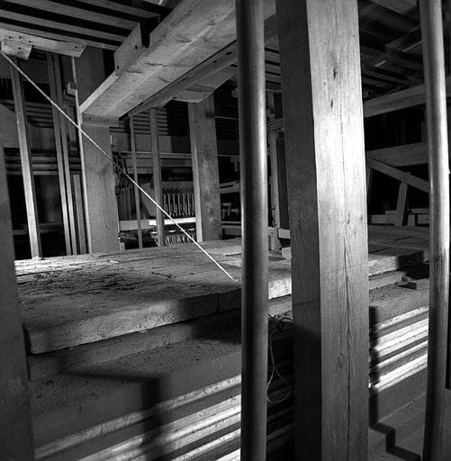 Orgue : Grands réservoirs à plis du soubassement dans le fond abrégé