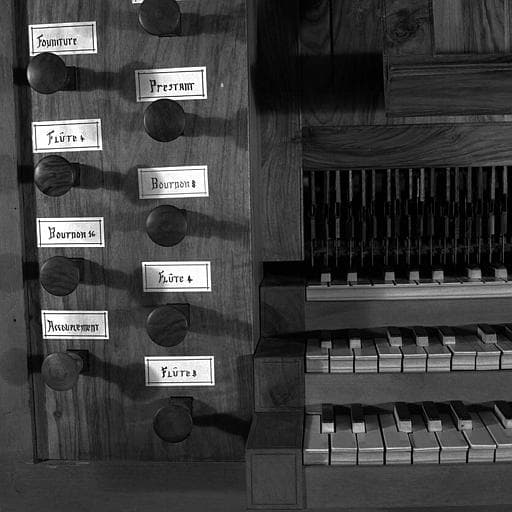 POP | Plateforme ouverte du patrimoineOrgue : Tirants de registres du côté gauche, départ de la mécanique du récit