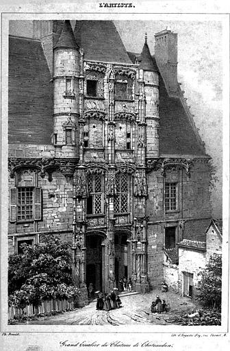 Lithographie : Elévation extérieure du grand escalier