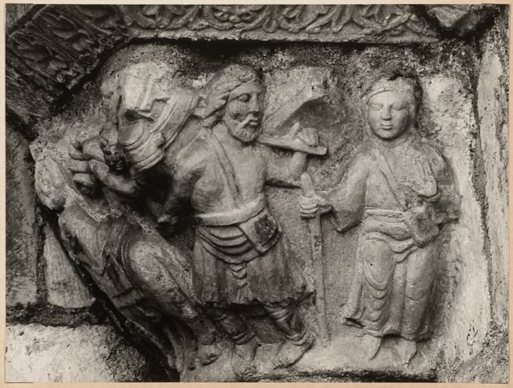 Portail latéral nord, ébrasement : chapiteau historié
