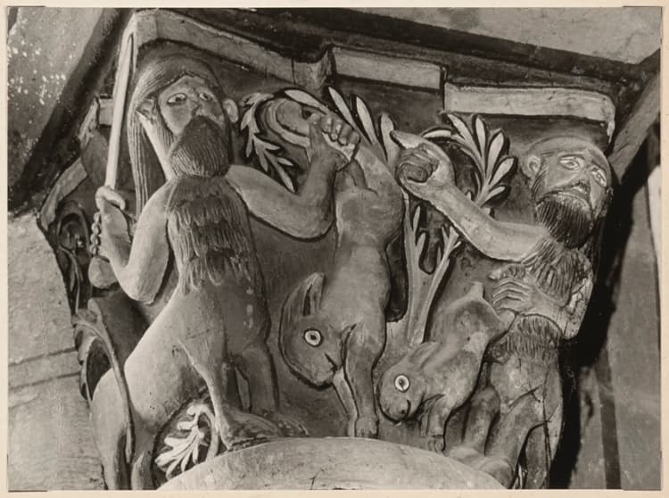 Chapiteau : Centaure et chasseur tenant des lièvres