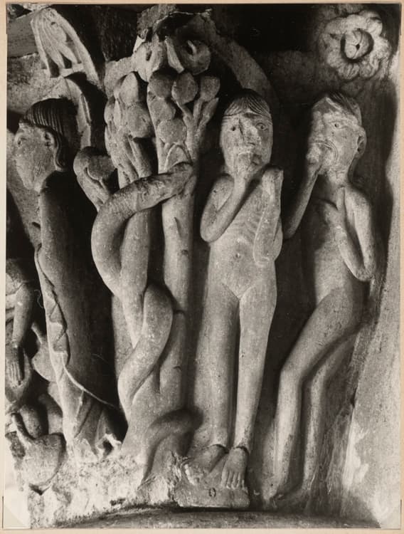 Chapiteau historié : Adam et Ève
