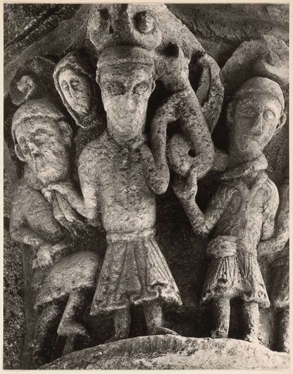 Chapiteau : personnage en tenant un autre par la barbe