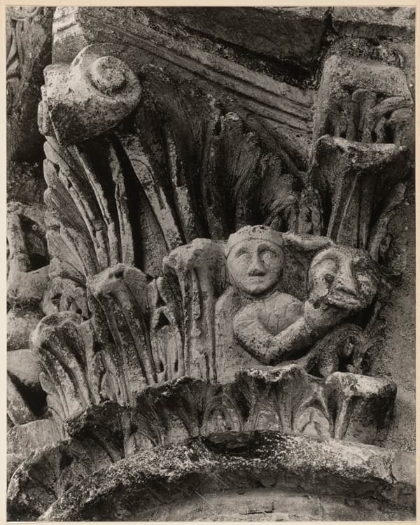 Chapiteau, détail : personnage dans les feuillages