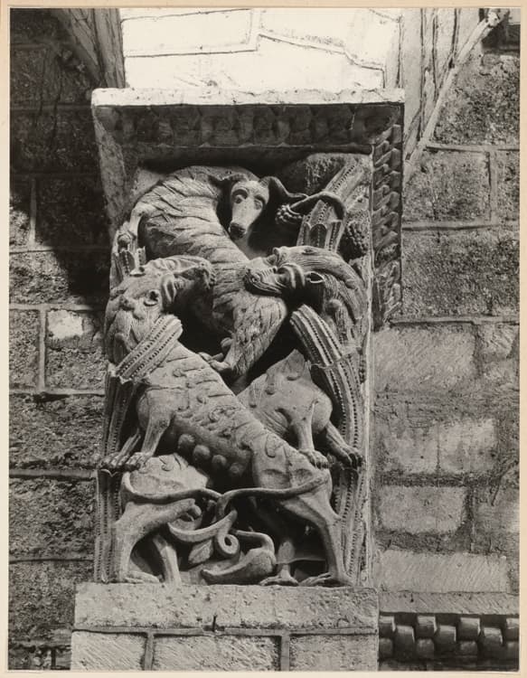POP | Plateforme ouverte du patrimoinePortail (à l’intérieur), pilier : lions s'attaquant à un capridé