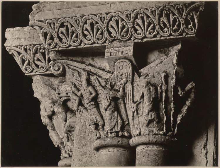 Chapiteau de colonne du cloître : personnages
