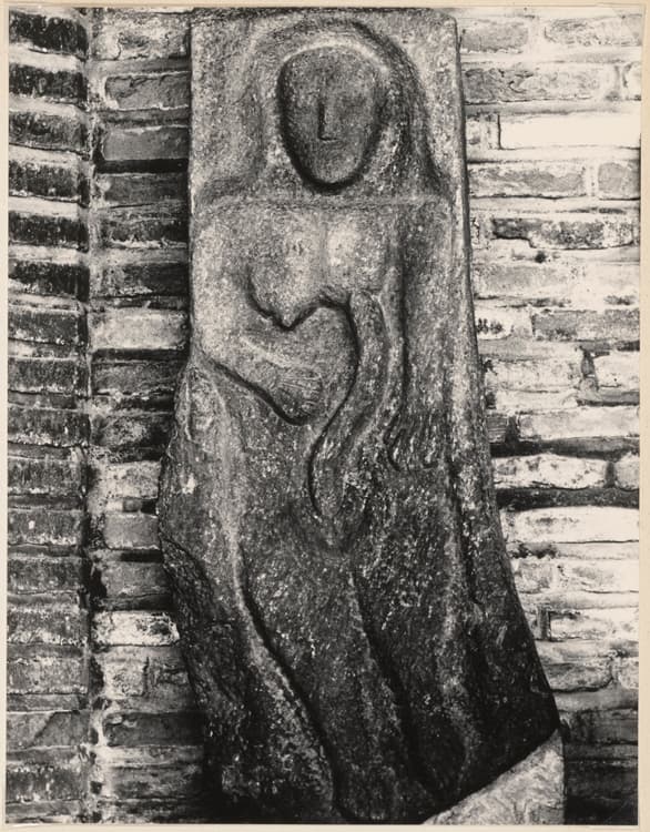 Élément sculpté ; Femme avec un serpent lui mordant le sein : la Luxure ?