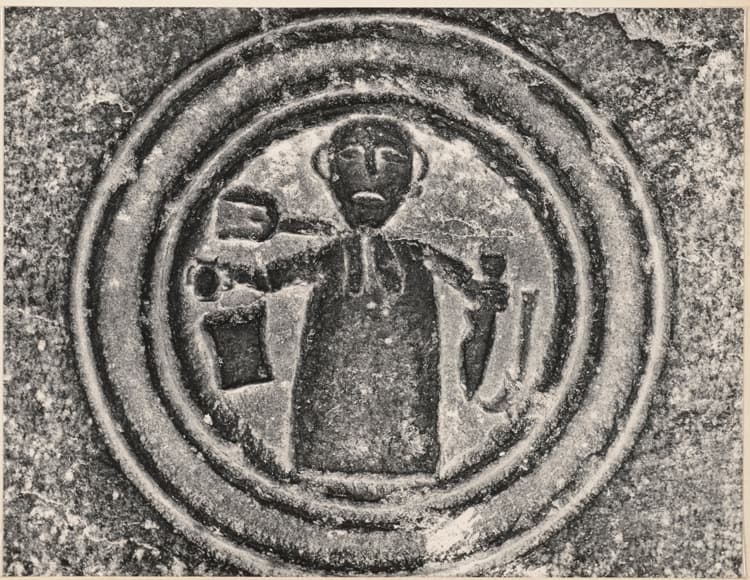 Bas-relief avec un personnage dans un médaillon