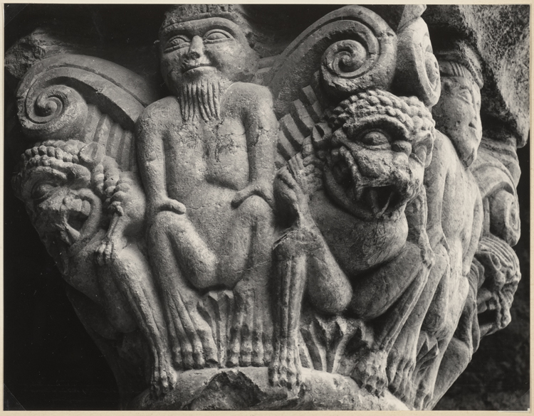 POP | Plateforme ouverte du patrimoineChapiteau du cloître avec un personnage et des créatures fantastiques