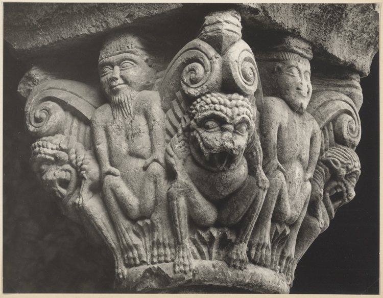 POP | Plateforme ouverte du patrimoineChapiteau du cloître avec un personnage et des créatures fantastiques, détail