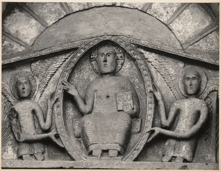 POP | Plateforme ouverte du patrimoinePorche de la façade sud, détail du tympan : Christ dans une mandorle et deux anges