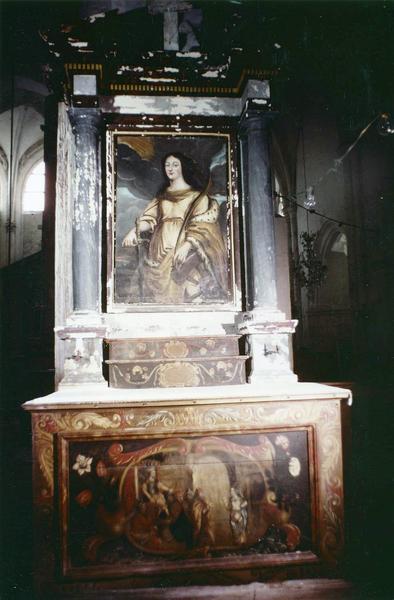 POP | Plateforme ouverte du patrimoineautel retable côté Nord du choeur, tableau : sainte Catherine, huile sur toile et devant d'autel : Esther devant Assuérus