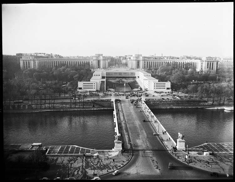 POP | Plateforme ouverte du patrimoineLe Palais de Chaillot, les bâtiments de l'ONU et l'esplanade du Trocadéro vus depuis la Tour Eiffel