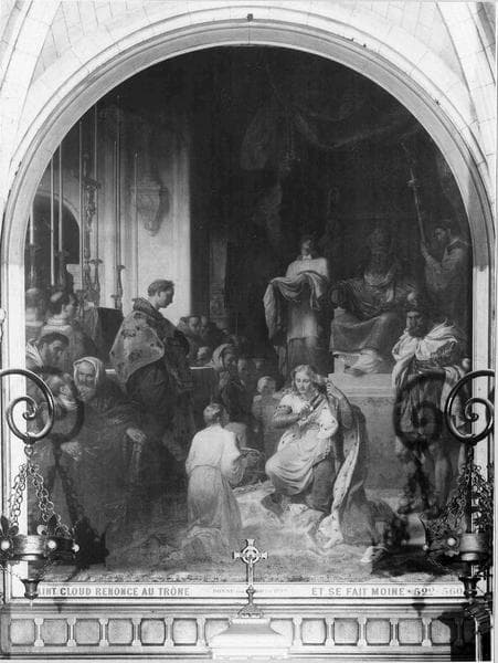 tableau : Saint Cloud renonçant au trône et sacrifiant sa chevelure