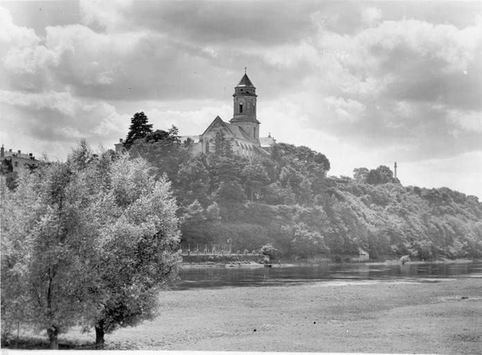 POP | Plateforme ouverte du patrimoineVue d'ensemble avec l'abbaye, le Mont Glonne et la Loire, un arbre à gauche