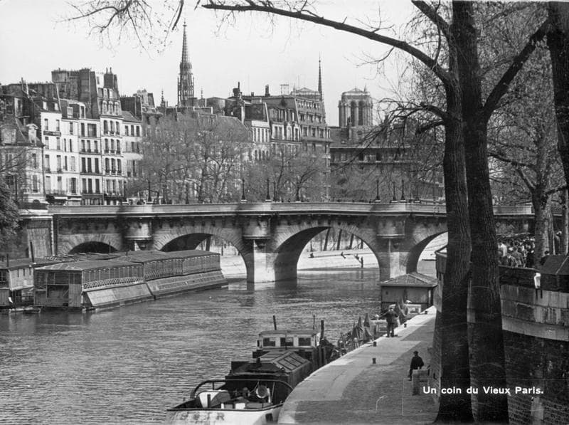 POP | Plateforme ouverte du patrimoinePont Marie, péniches et maison flottante sur la Seine ; avec la légende SNCF « Un coin du vieux Paris »