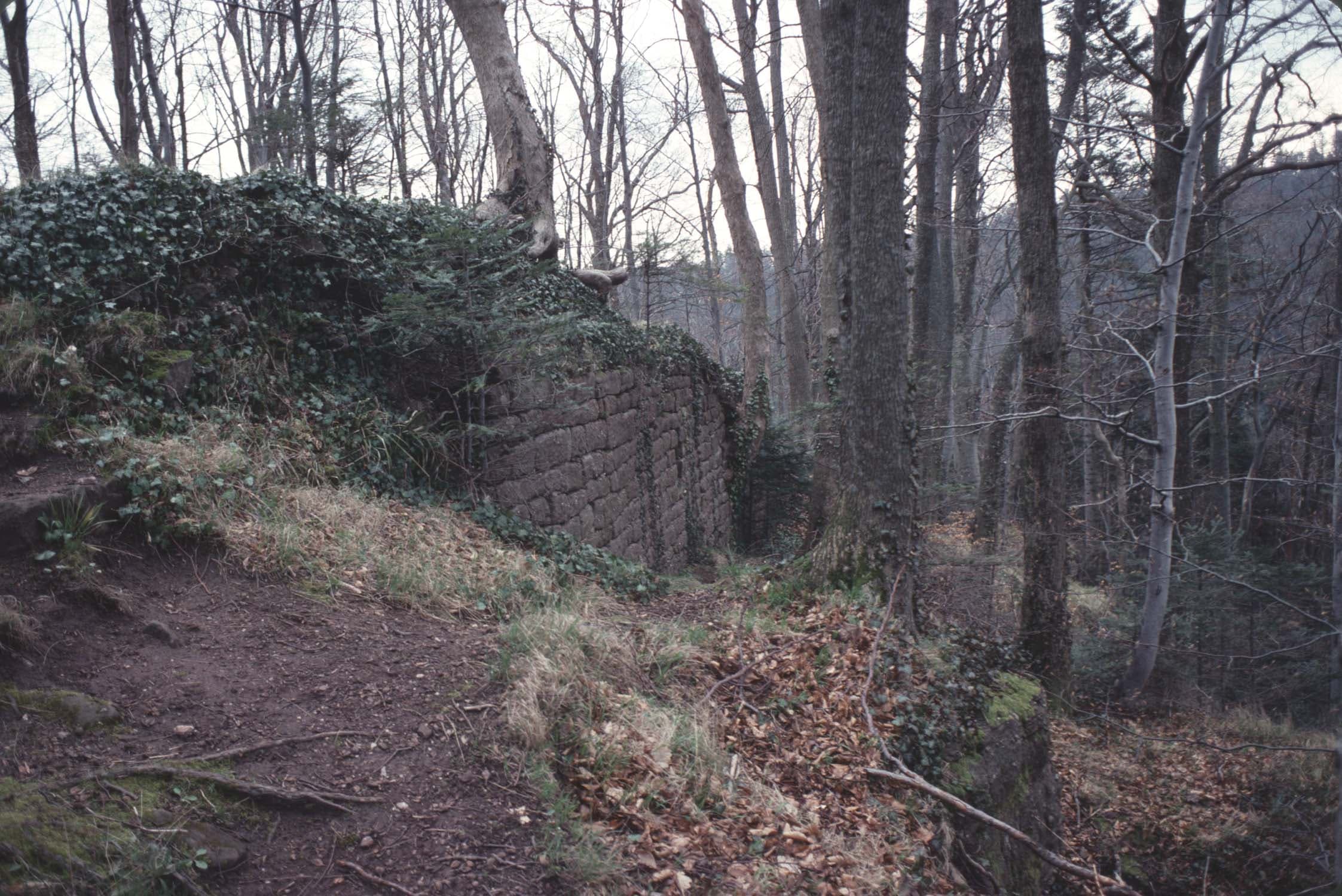 Vestiges de la 1ère enceinte dans la forêt, vue partielle