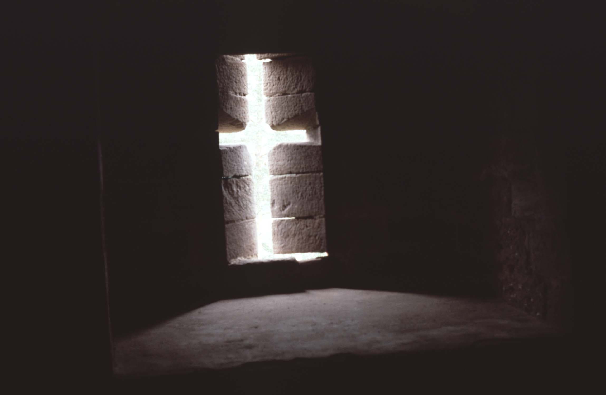 Archère du donjon, vue à contre-jour de l'intérieur