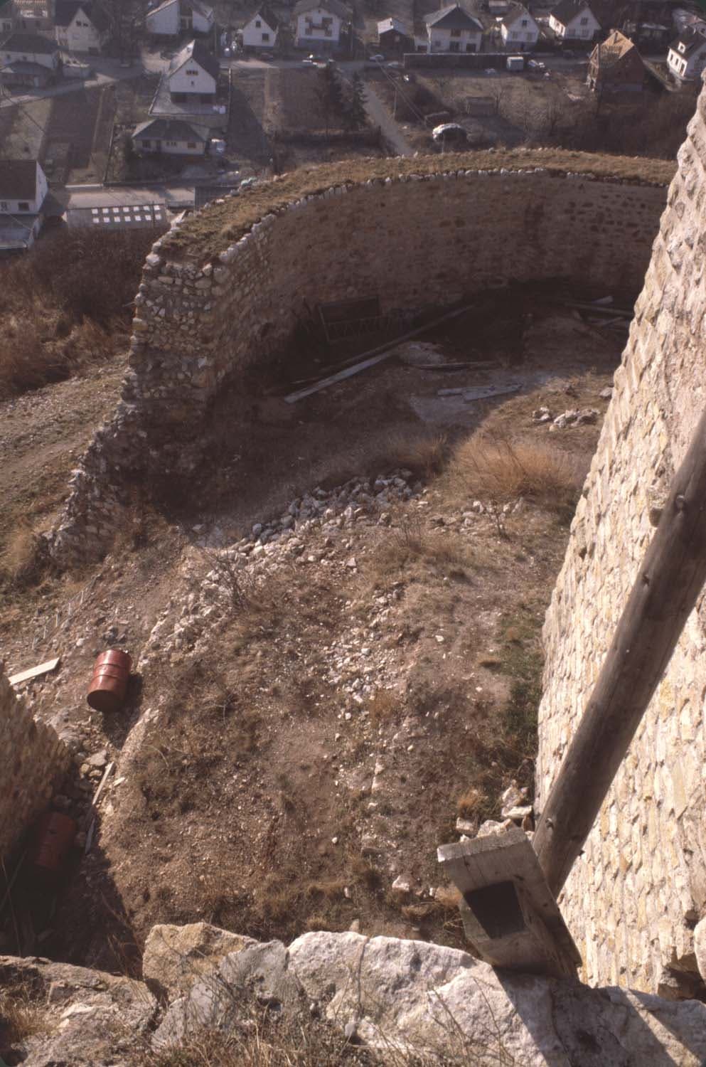 Vestiges de l'entrée depuis le mur bouclier, vue plongeante