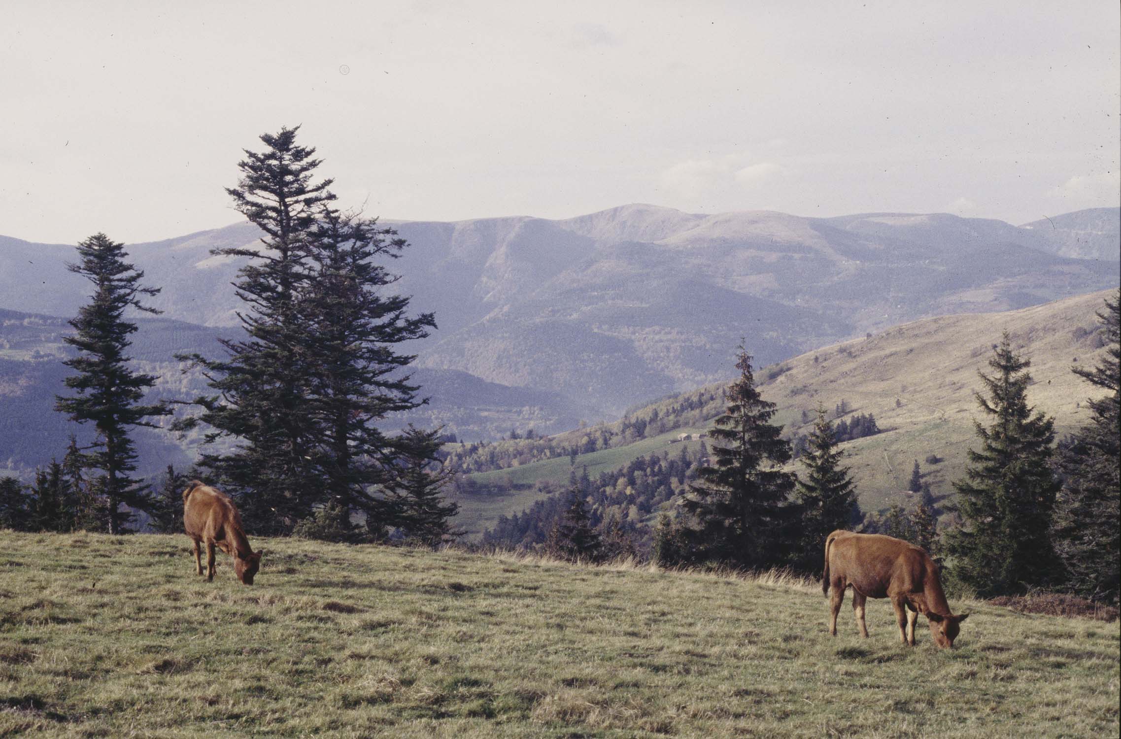 POP | Plateforme ouverte du patrimoineLe col du Hilsenfirst et la chaîne des Vosges près du Hohneck : vaches paissant