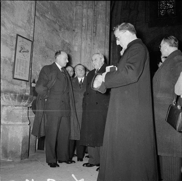 POP | Plateforme ouverte du patrimoineVisite officielle de la basilique par Jean Berthoin, ministre de l'Education nationale (à gauche)