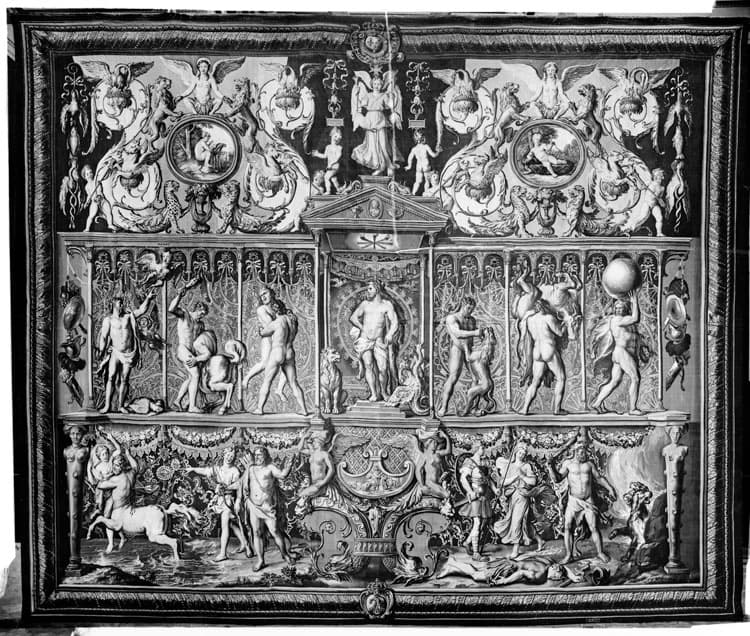 Tapisserie des Gobelins, tentures des triomphes des dieux ou Arabesques, pièce n°6 : le triomphe d'Hercule