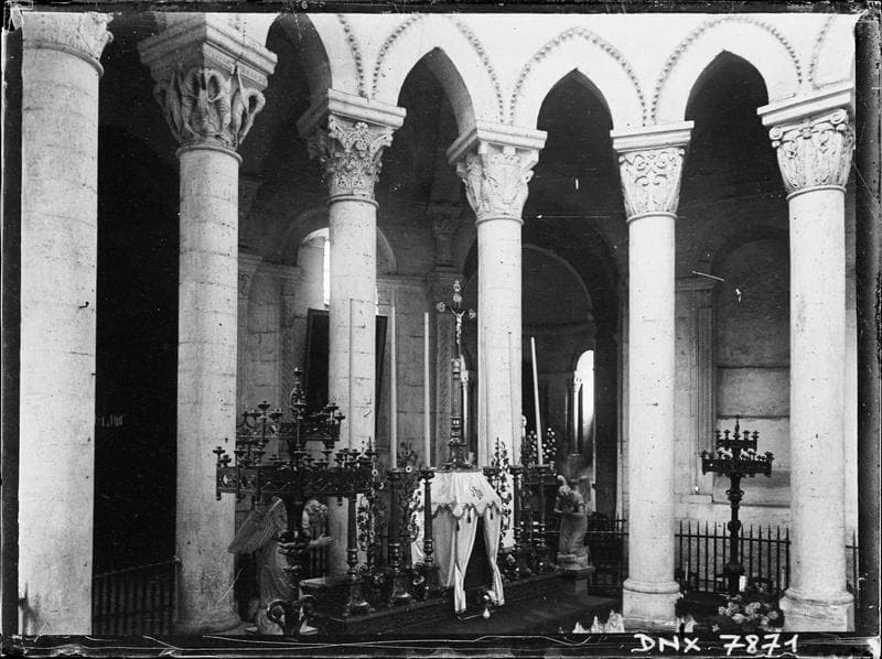 POP | Plateforme ouverte du patrimoineIntérieur : autel du choeur, colonnes et chapiteaux de l'hémicycle côté sud