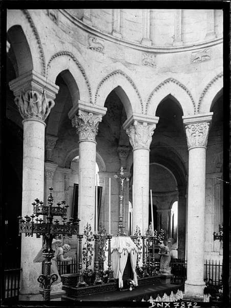 POP | Plateforme ouverte du patrimoineIntérieur : autel du choeur, colonnes et chapiteaux de l'hémicycle côté sud