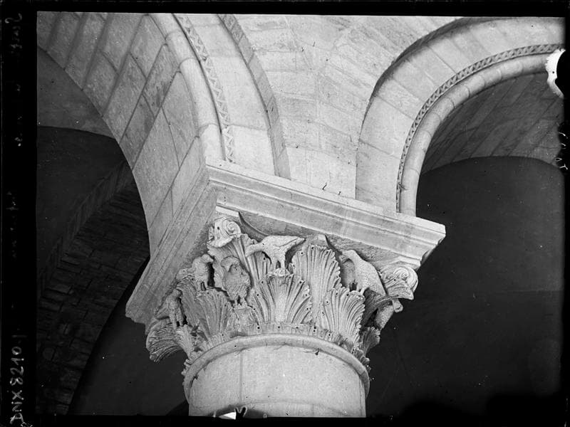 POP | Plateforme ouverte du patrimoineIntérieur, nef côté nord : chapiteau sculpté de feuillages et d'oiseaux