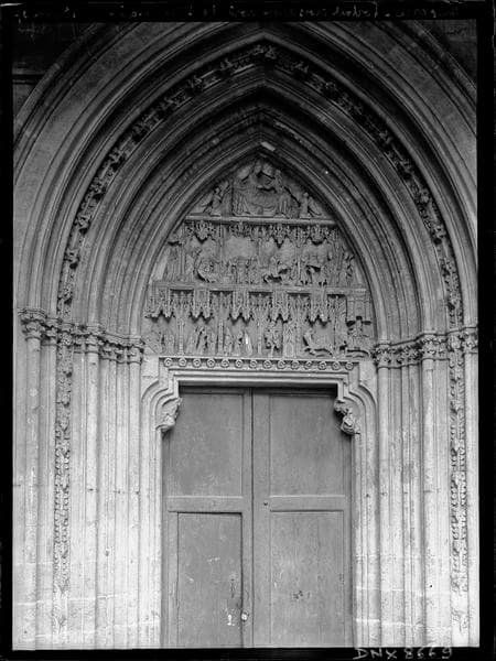 POP | Plateforme ouverte du patrimoinePortail nord sous la galerie du cloître, tympan sculpté de scènes de la vie de saint Germain
