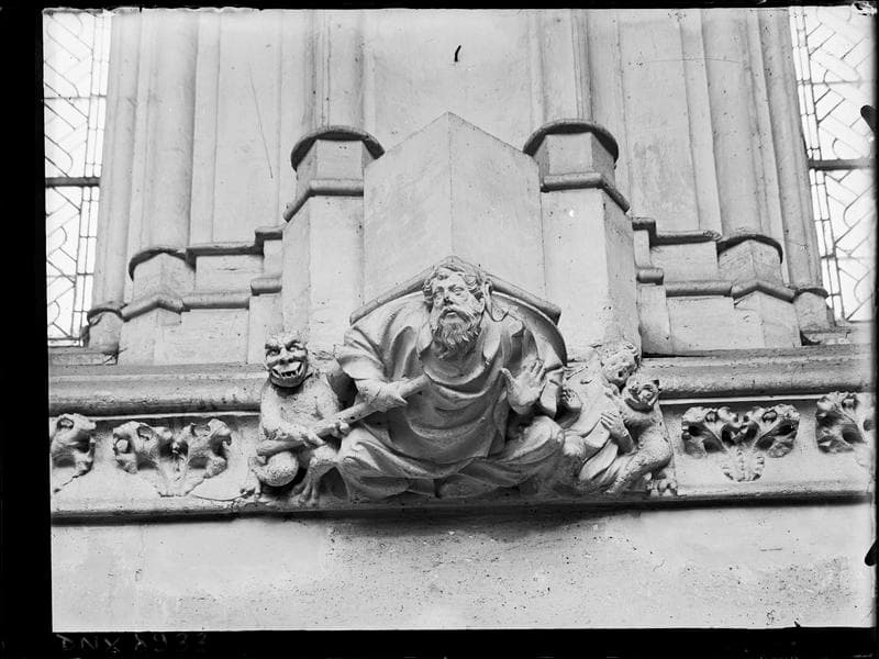 Sainte-Chapelle, intérieur, nef : culot sculpté de personnages et de démons